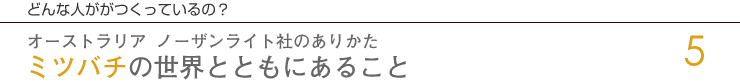 ![]() ノーザンライト社の創業者であるジェフリー ギブス氏は、二四年もの間ビーズキーパー(養蜂職人)として、オーストラリアの自然の中で暮らしてきました。その間、彼は養蜂のことを知りつくし、オーストラリアのビーズキーパーたちとの強い絆をつくってきました。 彼はけっしてミツバチを酷使しません。ミツバチの群れが繁栄することに心をくだき、巣箱を健全な状態に保つために取り除く余分なビーズワックスだけを使い、採取したあとの巣はそのままミツバチに返します。ミツバチのコロニーを守り、殖やすことが何よりも大切にされます。 ノーザンライト社は、ミツバチの世界を守るために、当然のように環境保護にも心をつくしています。パッケージにはリサイクル紙を使用し、インクには大豆インクを使っています。アロマ用キャンドルの容器にはアルミではなくブリキを使い、使い回しをするように設計されています。また、パラフィン、プラスティック、化学物質の入った接着剤やインク、化学燃料などは一切使用していません。 古代からの芸術ともいえるミツロウキャンドルの炎を守り続けるというジェフリーの信念は、自然ととも生きその恵みをいただくという生き方、あり方を体現しています。 |