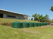 工業団地の森の中にあえて建てたノーザンライトの工場 工業団地の中にありながら、自然との共生の大切さを周囲に訴えている。 写真手前のタンクで雨水を貯めています。工場内の温度が上昇すると、 タンクの水が地下のパイプを通り、工場の屋根に設置されたスプリンク ラーでシャワーのように撒かれ、工場全体の温度を下げます。 エコと美しさ・・両方が大切にされた、 キャンドルそのもののような工場です。 |